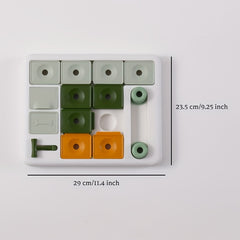 Perfect for extra entertainment during a rainy day, when your dog needs an extra activity to burn some energy, as part of a daily workout routine, or play together to solve this puzzle and strengthen the bond with your dog. Your pup will have to sniff and figure out which pieces to slide or move to get to the yummy treatos.